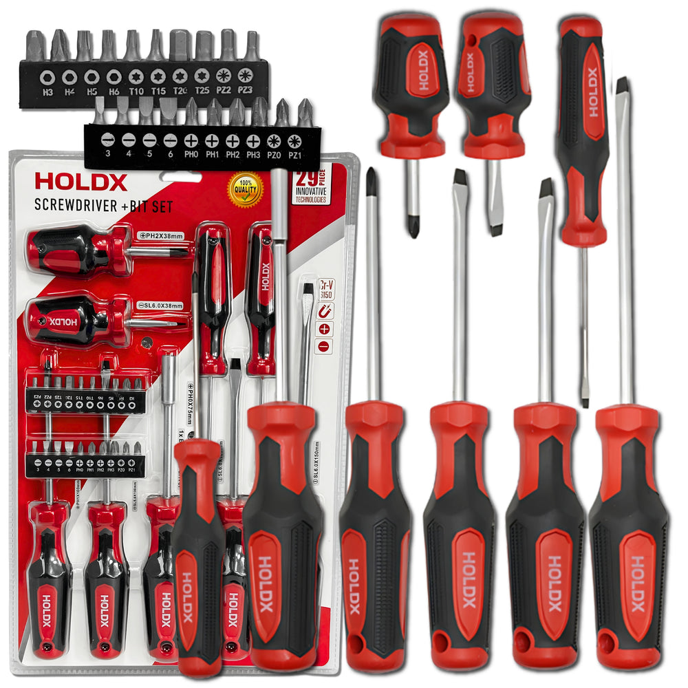 This 29-piece screwdriver set from Holdx is perfect for all your DIY and repair needs. With a variety of sizes and types, including both flathead and Phillips, this set ensures you're equipped for any task. Designed for durability and comfort, it’s an essential toolset for your toolbox.